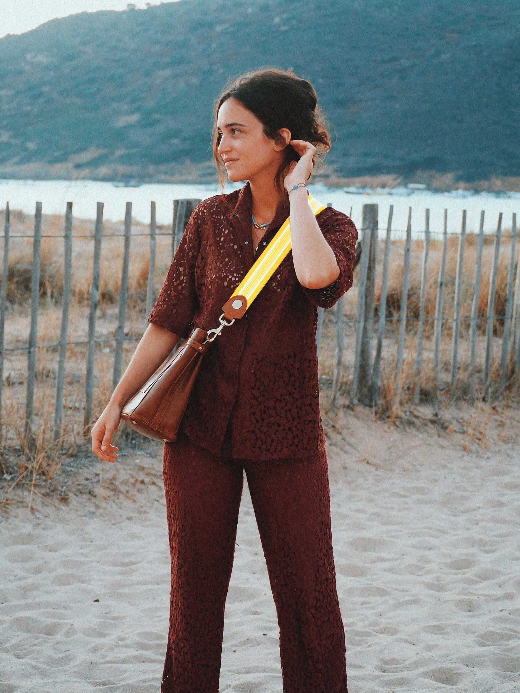 - Pochette en tissu coloré. Ecusson MAY brodé en cadeau.